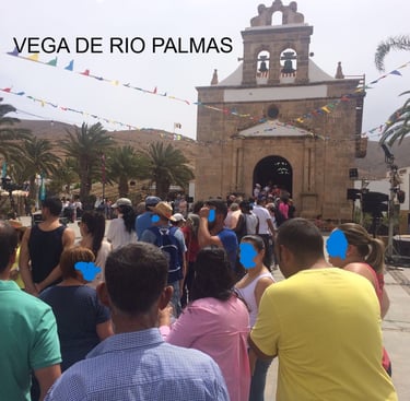Retomando la carretera FV-30 en dirección a Pájara, otra curiosidad que merece la pena ver para quien tenga tiempo es el pequeño pueblo de Vega de Río Palmas. Aquí, a mediados de septiembre, se venera a la santa patrona de la isla, la Virgen de la Peña. Es una gran peregrinación para toda la población, con mucha música y platos canarios (que también se pueden degustar en los distintos "garajes" durante el camino) de los isleños, que son muy hospitalarios en esta ocasión.